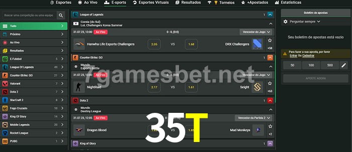O 35T oferece uma grande seleção de opções de apostas em e-sports com probabilidades competitivas